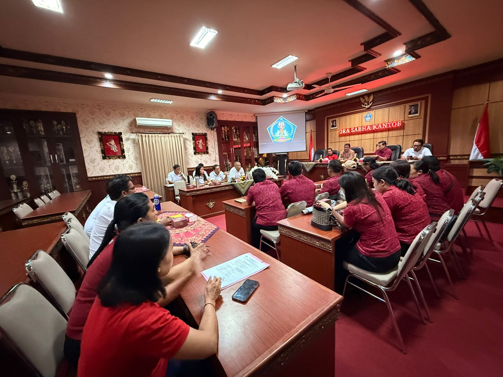 Setibanya di Kantor Desa Batubulan sekitar pukul 09.30 WITA, rombongan disambut secara resmi oleh Perbekel Desa Batubulan, Bapak Dewa Gede Sumertha, SH, MH, bersama jajaran perangkat desa. Turut hadir Ketua BPD Batubulan, Bapak Kadek Wira Candra, ST, beserta seluruh anggota BPD.