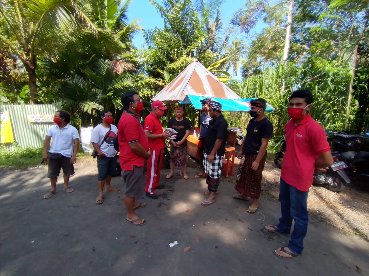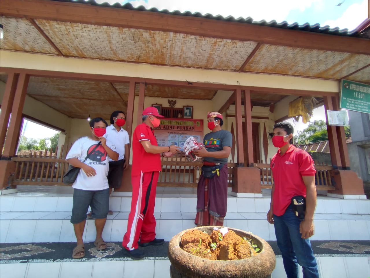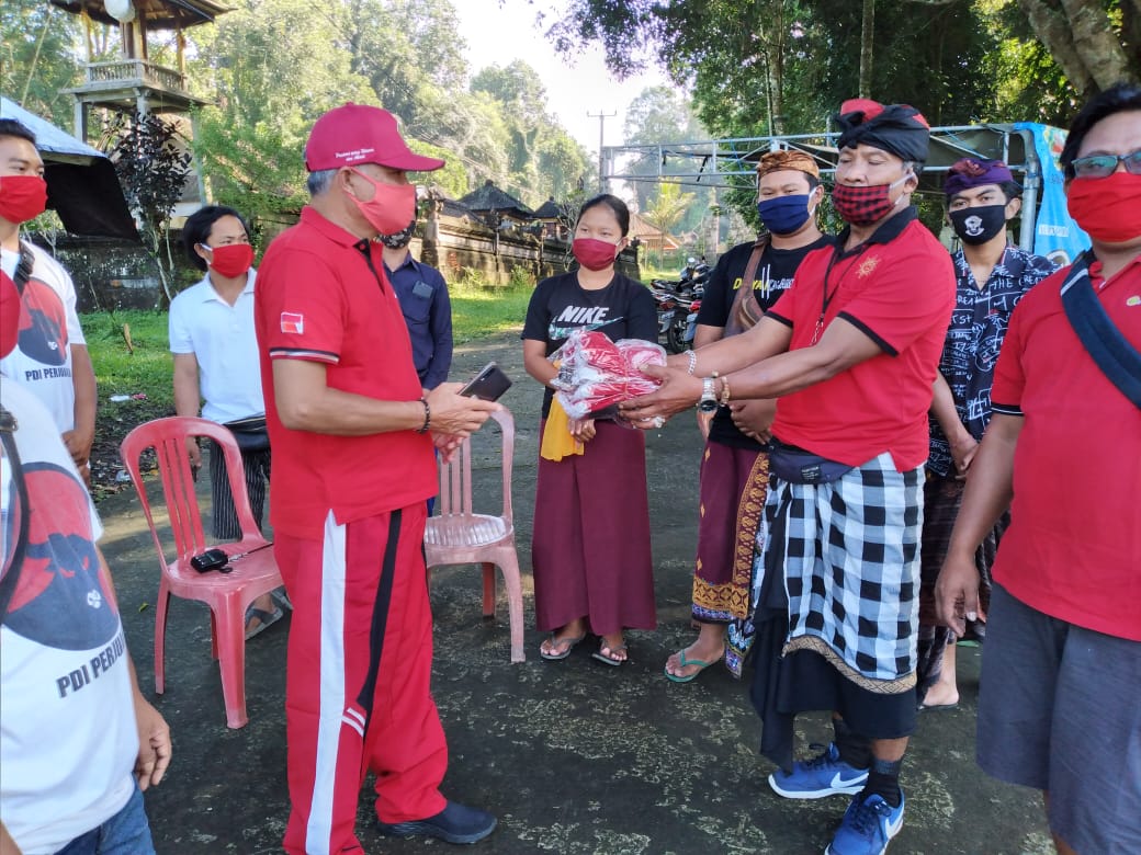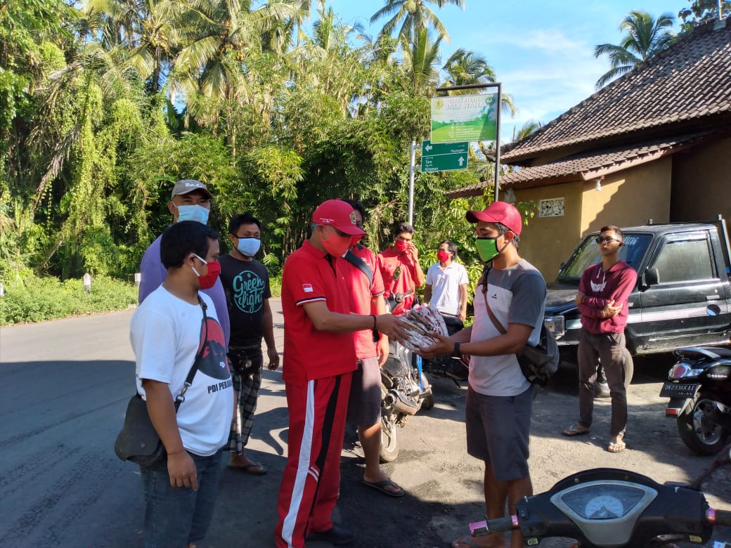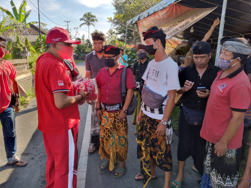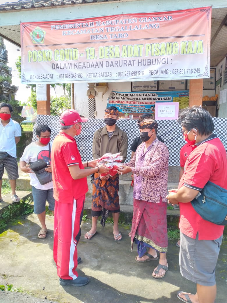 Taro – Senin 20 April 2020 DPRD Gianyar dari Fraksi PDI Perjuangan Bapak I Nyoman Ondo Wirawan, SH bersama PAC PDI Perjuangan Tegallalang, di dampingi oleh Ranting dan anak ranting sedesa Taro membagi-bagikan masker gratis kepada seluruh masyarakat khususnya satgas Covid-19 Sedesa Taro sebanyak 2000 masker.