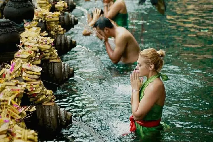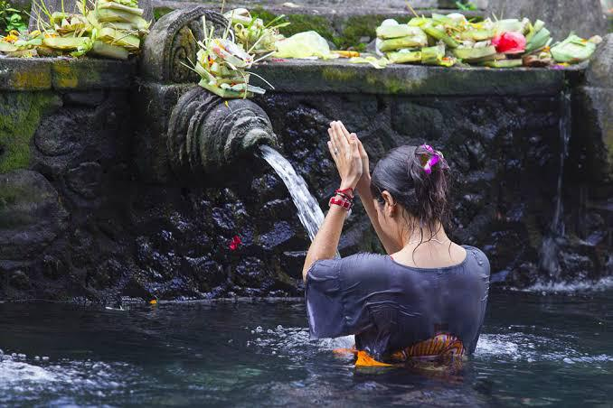 Ada yang melukat dan membawa sarana persembahyangan, ada pula yang sekadar mandi sembari berekreasi bersama sanak famili.