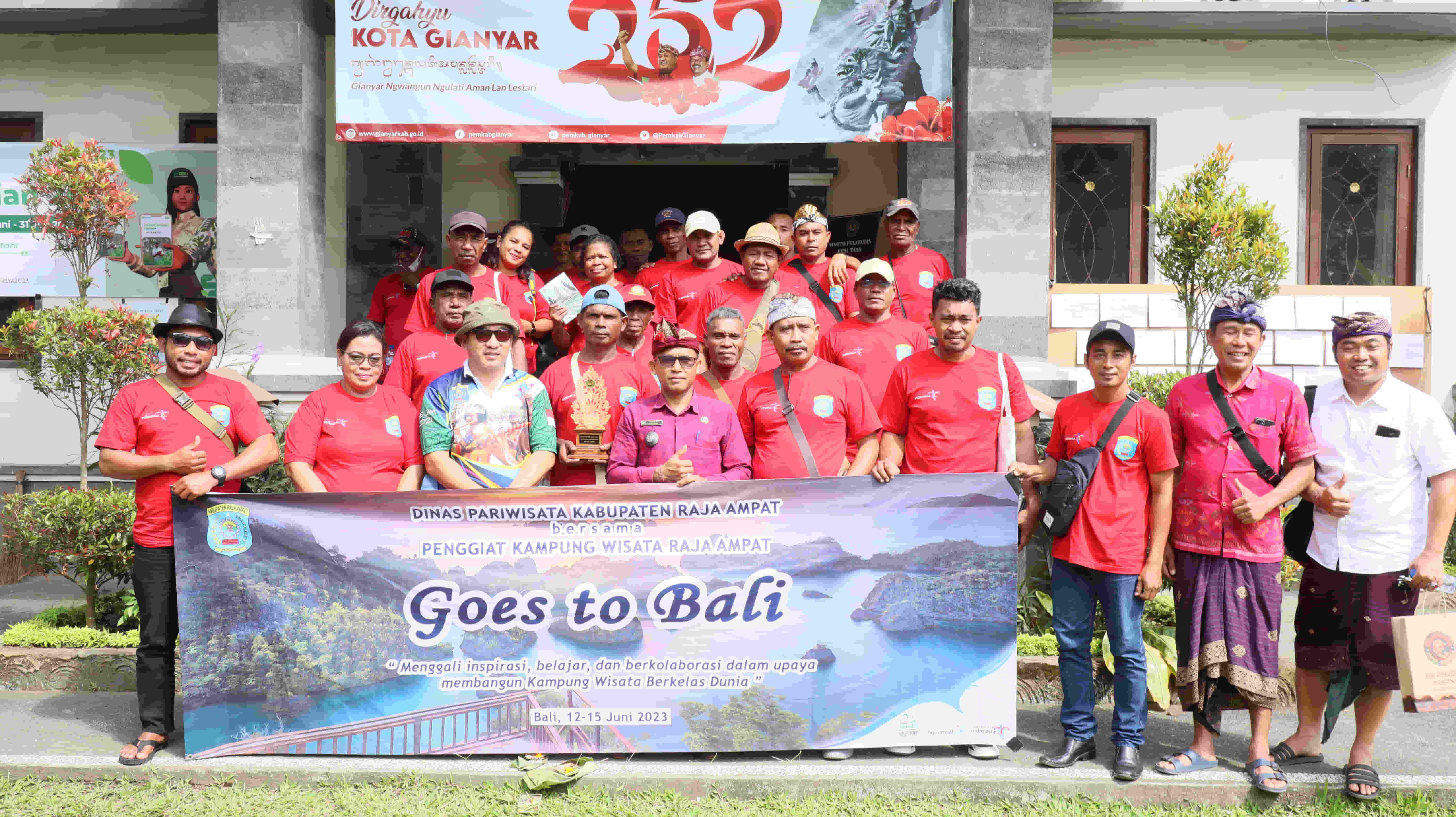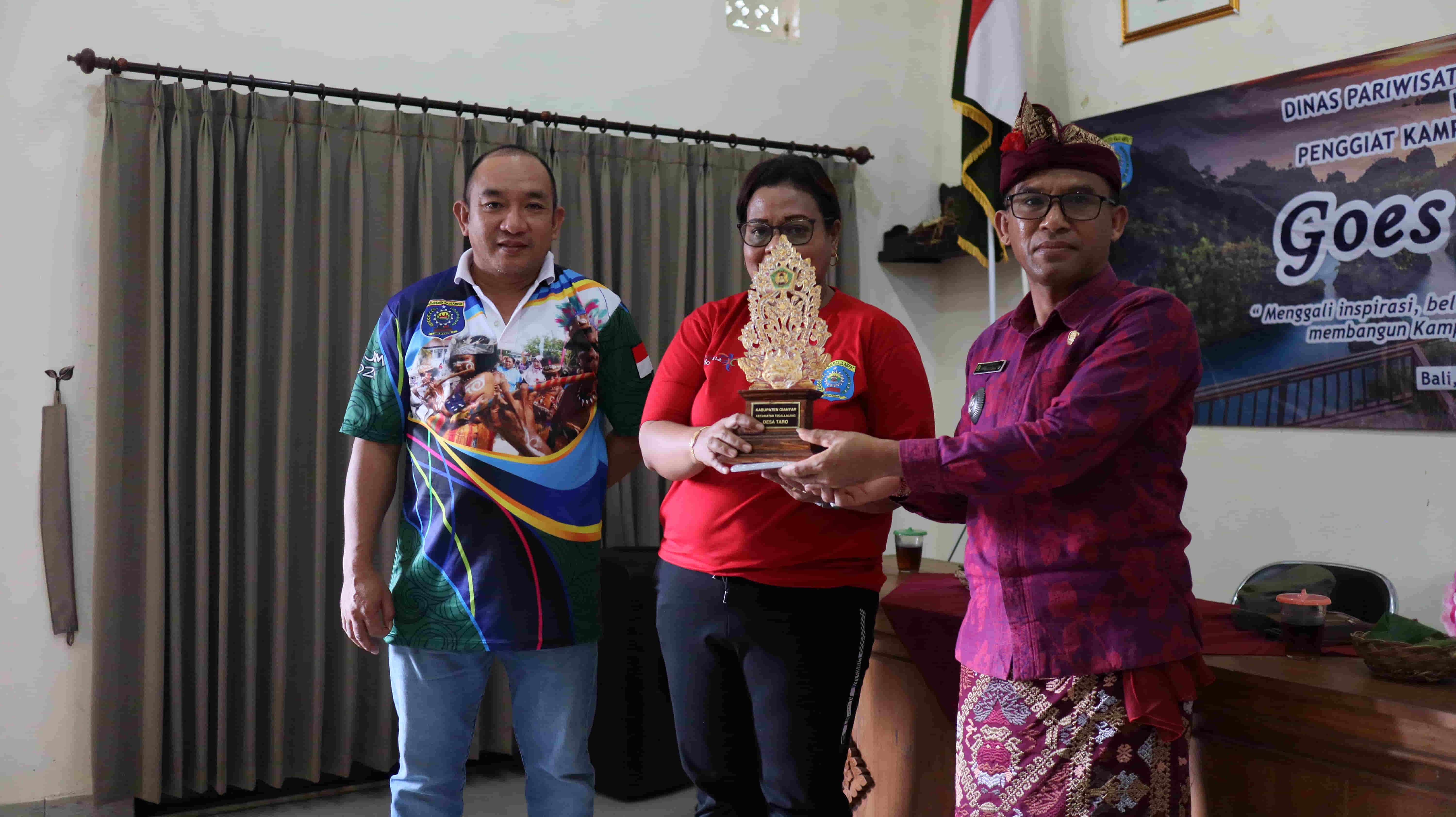 Pemerintah Raja Ampat Papua Barat berkunjung dan melakukan study banding ke Desa Taro tepatnya Desa Wisata Taro. Raja Ampat sebanyak 31 orang yang terdiri dari Wakil DPRD Raja Ampat, Kadis Pariwisata Raja Ampat, Kepala Kampung, Kepala Adat dan Pengelola Wisata Raja Ampat. Rombongan tiba di Desa Taro sekitar jam 11.00 Wita dan disambut langsung oleh Perbekel Taro I Wayan Warka yang di damping oleh Ketua Pokdarwis Desa Wisata Taro I Wayan Gede Ardika, SE dan Direktur Bumdes Sarwada Amertha Desa Taro I Wayan Kertha di Aula Rapat Kantor Desa Taro.