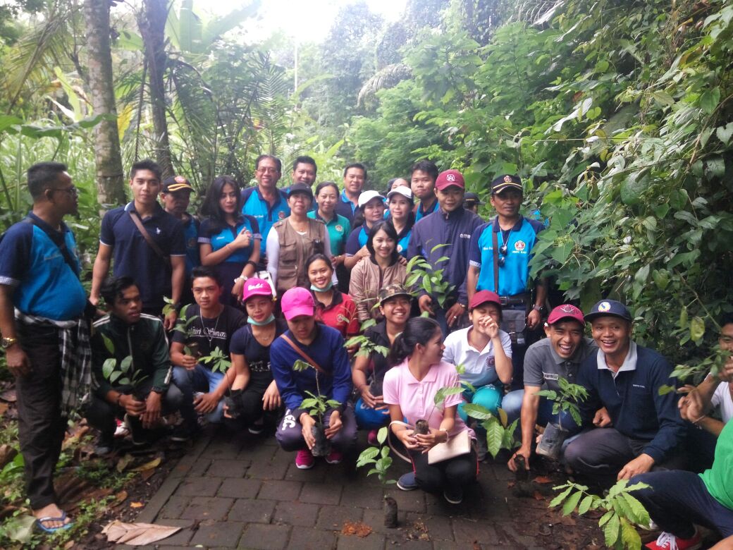 Kegiatan ini diawali dengan kerja bhakti kebersihan lingkungan di seputaran Pura Gunung Raung Desa Taro dan dilanjutkan dengan penanaman pohon mahoni dan pohon majegau di seputaran alas taro.