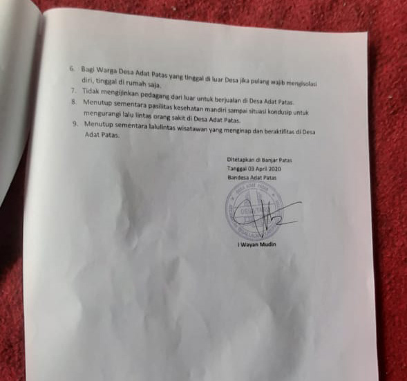 Kelihan Banjar Dinas Patas menjelaskan via telpon bahwa kegiatan ini hingga berita ini diturunkan masih sedang berlangsung dan ditargetkan hari ini tuntas dilaksanakan. Beliau berharap seluruh warganya bisa taat dan patuh atas semua himbauan tersebut demi keselamatan kita bersama.