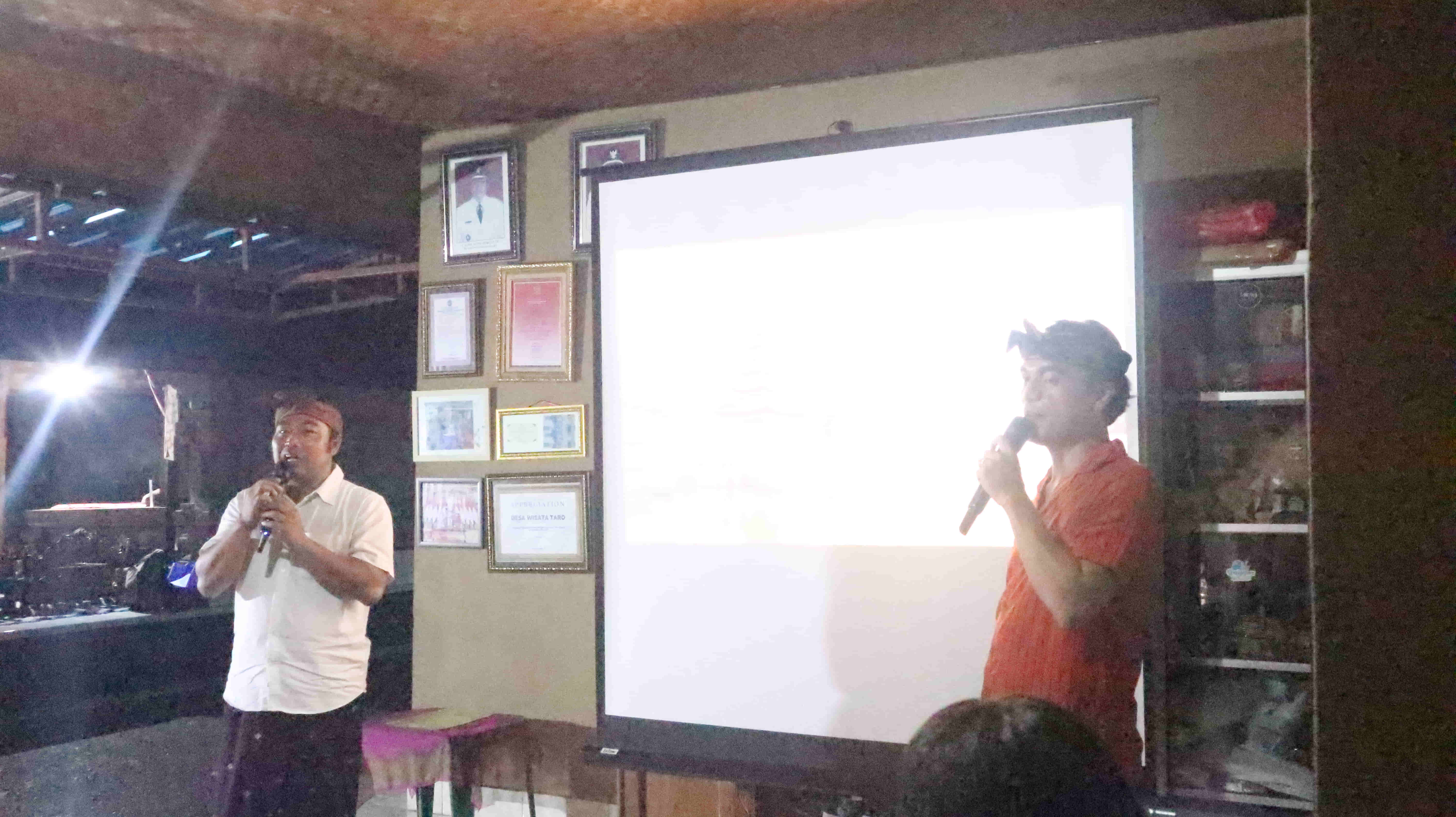 Seusai outbound dilanjutkan dengan makan siang siang bersama dan mengelilingi kawasan Obyek Wisata Lembu Putih Taro. Rombongan diajak melihat langsung aneka tanaman langka dan satwa suci lembu putih taro. Diajak pula melihat akomodasi yang dimiliki oleh Obyek Wisata Lembu Putih yakni menginap di kawasan peternakan dengan nuansa spiritual yang tinggi tentu akan menjadi sensasi berbeda jika wisatawan bisa bermalam di tempat ini. Selanjutnya rombongan diajak ke akomodasi yang ada di Desa Wisata Taro yakni Jero Mangku Gede House, Nang Taro Homestay, Komang Petak Homestay dan Made Bidel House. Berselang sekutar 2 jam yakni sekitar jam 7.30 wita diajak mengunjungi dan melihat langsung kunang-kunang di The Fireflies Garden yaitu kawasan konservasi pertanian organik berupa obyek wisata kuang-kunang. Disini juga diselingi dengan coffe break dan menu khan singkong goreng The Fireflies Garden. Sekitar jam 22.30 wita kemudian kembali ke masing-masing akomodasi untuk beristirahat dan prepare stamina untuk kegiatan esok hari.