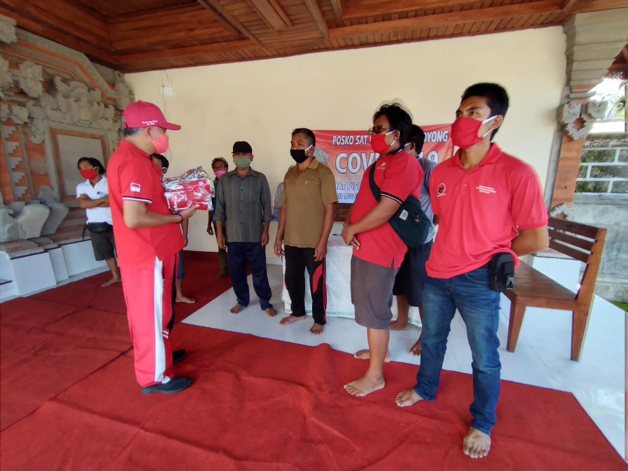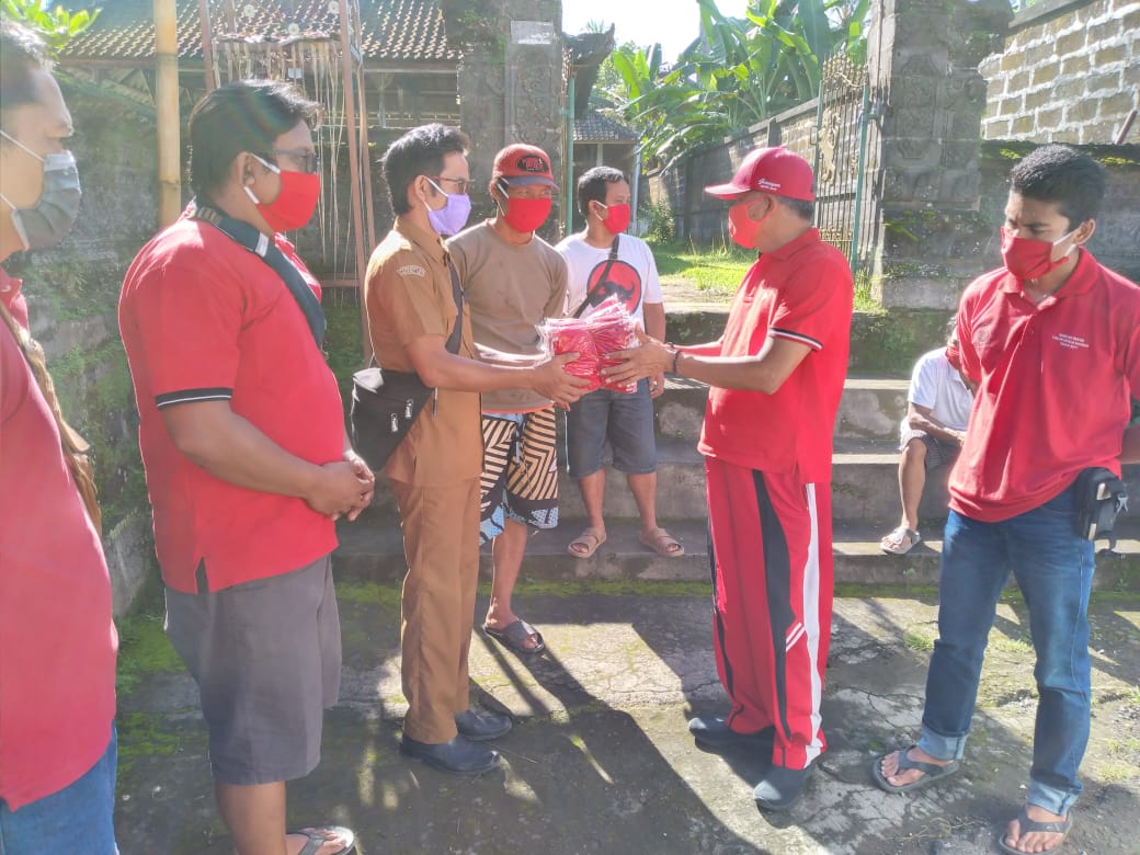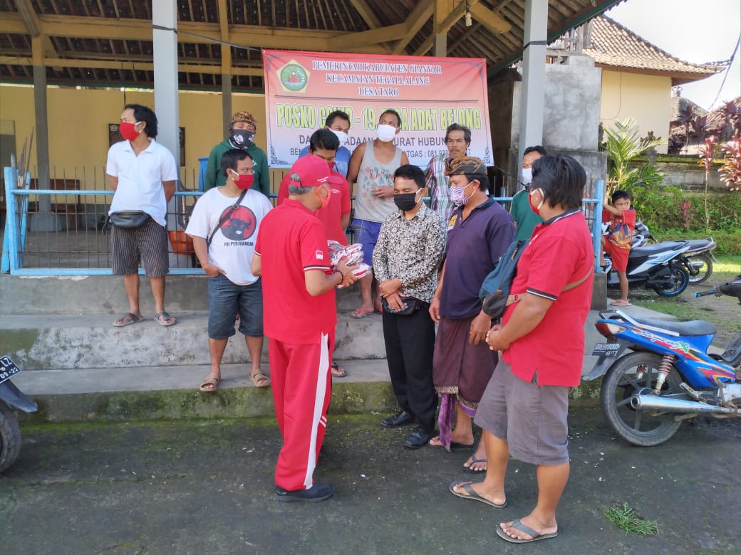 Taro – Senin 20 April 2020 DPRD Gianyar dari Fraksi PDI Perjuangan Bapak I Nyoman Ondo Wirawan, SH bersama PAC PDI Perjuangan Tegallalang, di dampingi oleh Ranting dan anak ranting sedesa Taro membagi-bagikan masker gratis kepada seluruh masyarakat khususnya satgas Covid-19 Sedesa Taro sebanyak 2000 masker.