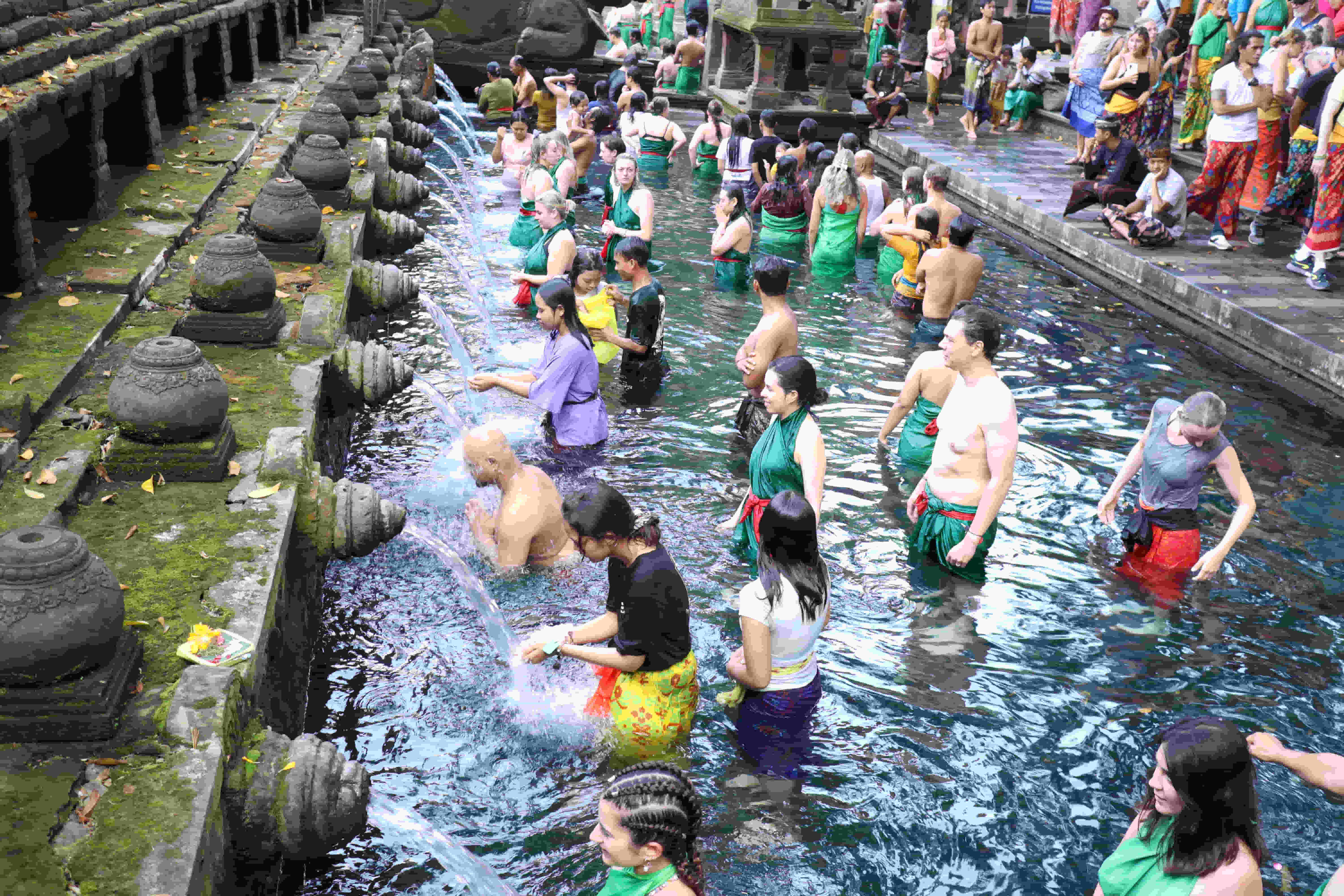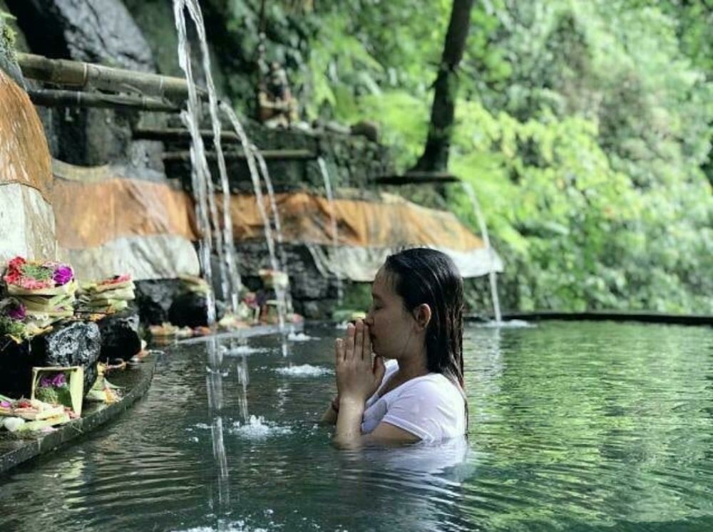 Ada yang melukat dan membawa sarana persembahyangan, ada pula yang sekadar mandi sembari berekreasi bersama sanak famili.