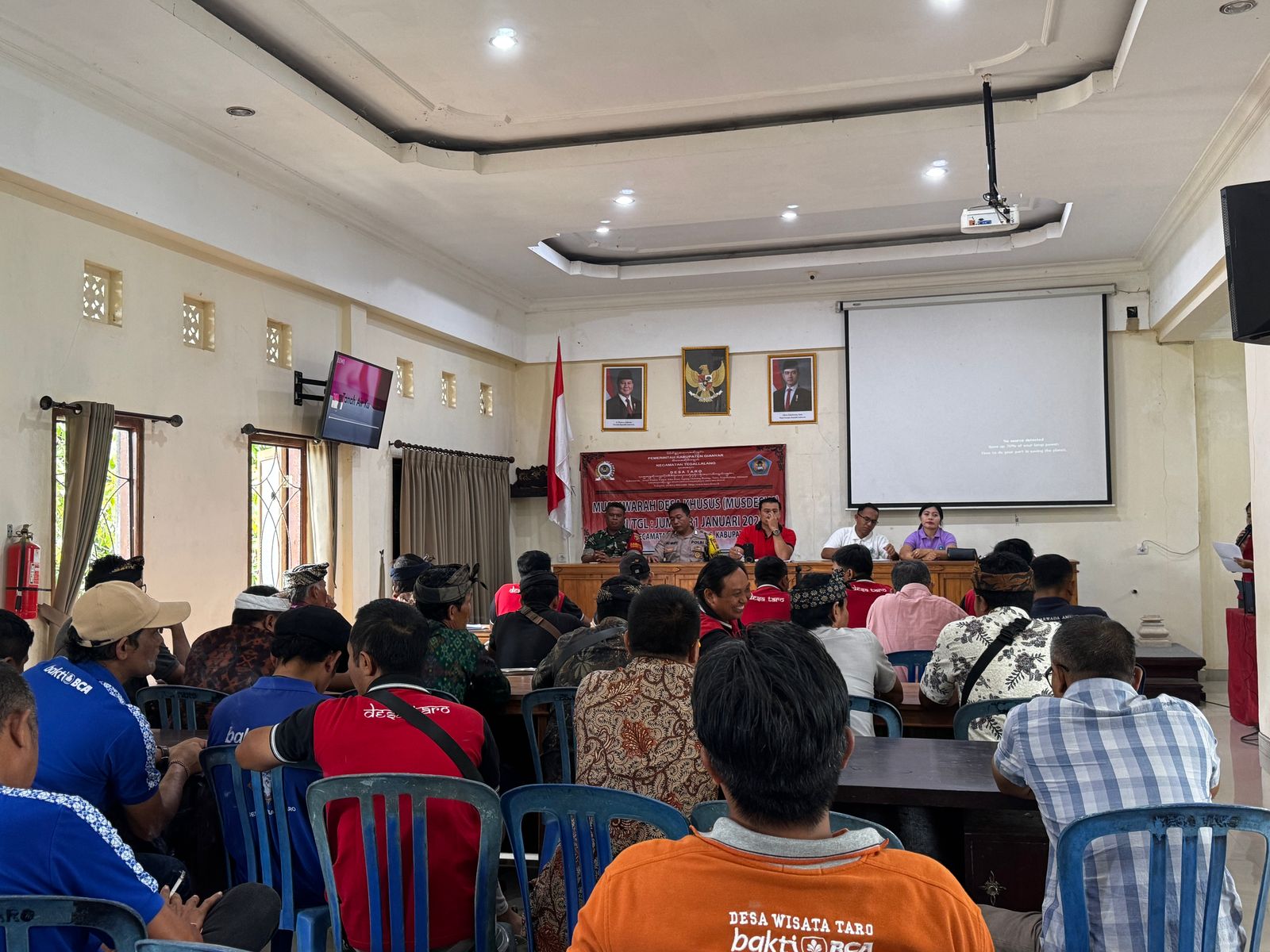 Taro, 31 Januari 2025 – Aula rapat Kantor Desa Taro menjadi saksi perhelatan Musyawarah Desa (Musdes) Khusus terkait perubahan Anggaran Pendapatan dan Belanja Desa (APBDes) Tahun Anggaran 2025. Agenda penting ini dihadiri oleh berbagai pemangku kepentingan, di antaranya Camat Tegallalang, Perbekel Desa Taro, Sekretaris Desa, Pendamping Desa, Babinsa, Bhabinkamtibmas, Bendesa Adat se-Desa Taro, Kelihan Banjar Dinas, Ketua Bumdesa, Ketua LPM, Ketua Tim Penggerak PKK, Ketua Karang Taruna, serta perwakilan dari berbagai elemen masyarakat seperti tokoh agama, rumah tangga miskin (RTM), penyandang disabilitas, kelompok ternak, pengrajin, hingga pengawas Bumdesa Sarwada Amertha.
