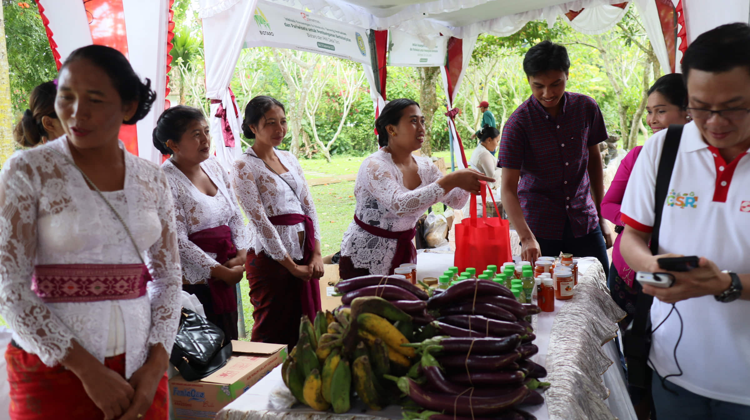 Kegiatan diawali dengan pengalungan bunga kepada Bapak Bupati Gianyar, Gek Diah dan Bapak Frenky Tirtowijoyo selaku Direktur Bank Sinarmas. Kemudian seluruh undangan menuju kawasan Lembu Putih Taro dan disambut dengan tarian asli desa taro yaitu Tari Narnir. Menyanyikan lagu Indonesia Raya dan doa bersama baru kemudian dilanjutkan dengan sambutan-sambutan yakni sambutan dari Perbekel Taro, OJK Bali dan Nusra, Sambutan Direktur Bank Sinarmas dan Sambutan Bapak Bupati Gianyar sekaligus meresmikan peluncuran akomodasi yang ada di lembu putih dan juga peluncuran produk Biotaro yang ditandai dengan pemukulan gong sebanyak tiga kali.